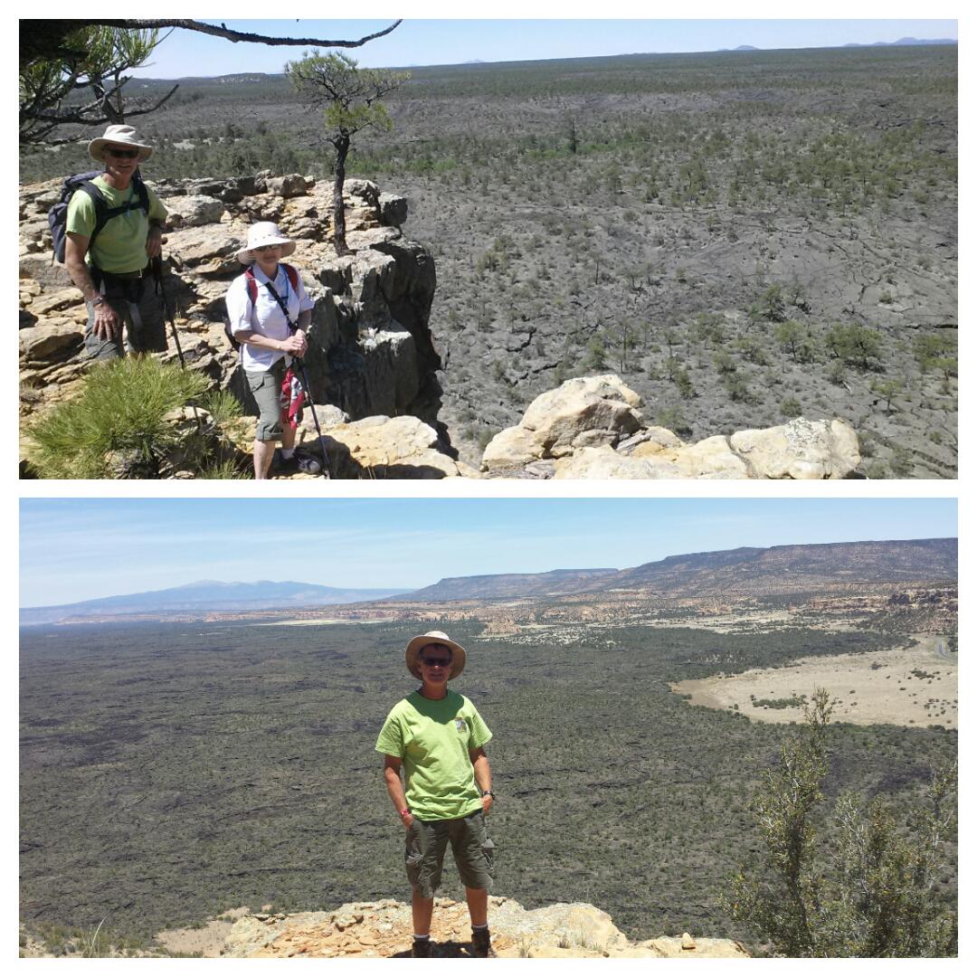 Since this was going to be our only full day here, we hit the ground running. The big hike today was an 8 miler on a sandstone ridge 500 feet above the edge of the lava field. This was an out and back that turned around at an overlook that gave us a view of New Mexico's largest arch. Tomorrow we continue the march eastward.